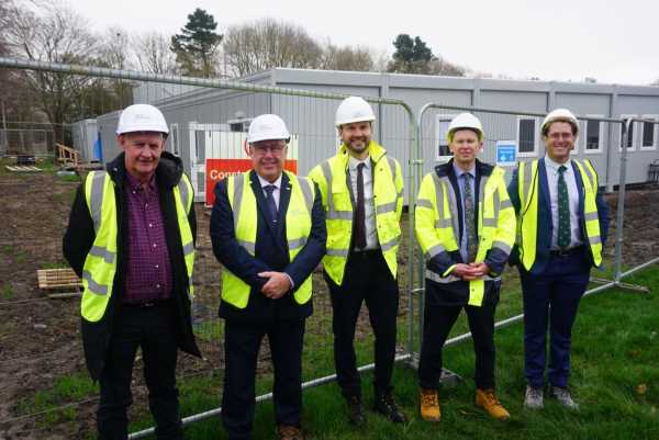 Council leader visits site of new temporary learning village for St Peter’s Junior School